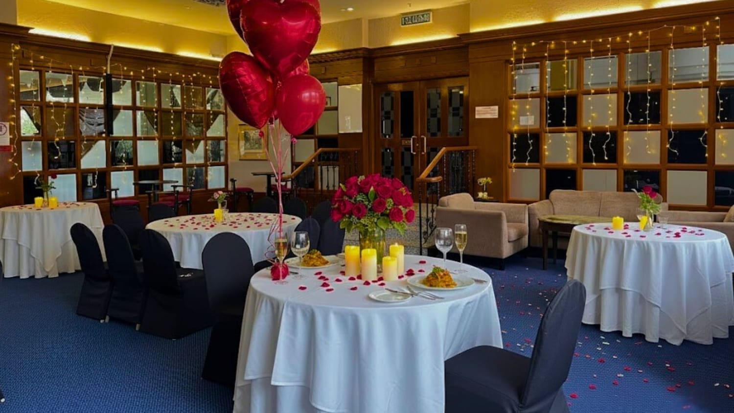 Exclusive Table Setup with Candle, Rose Petals & Soft Music